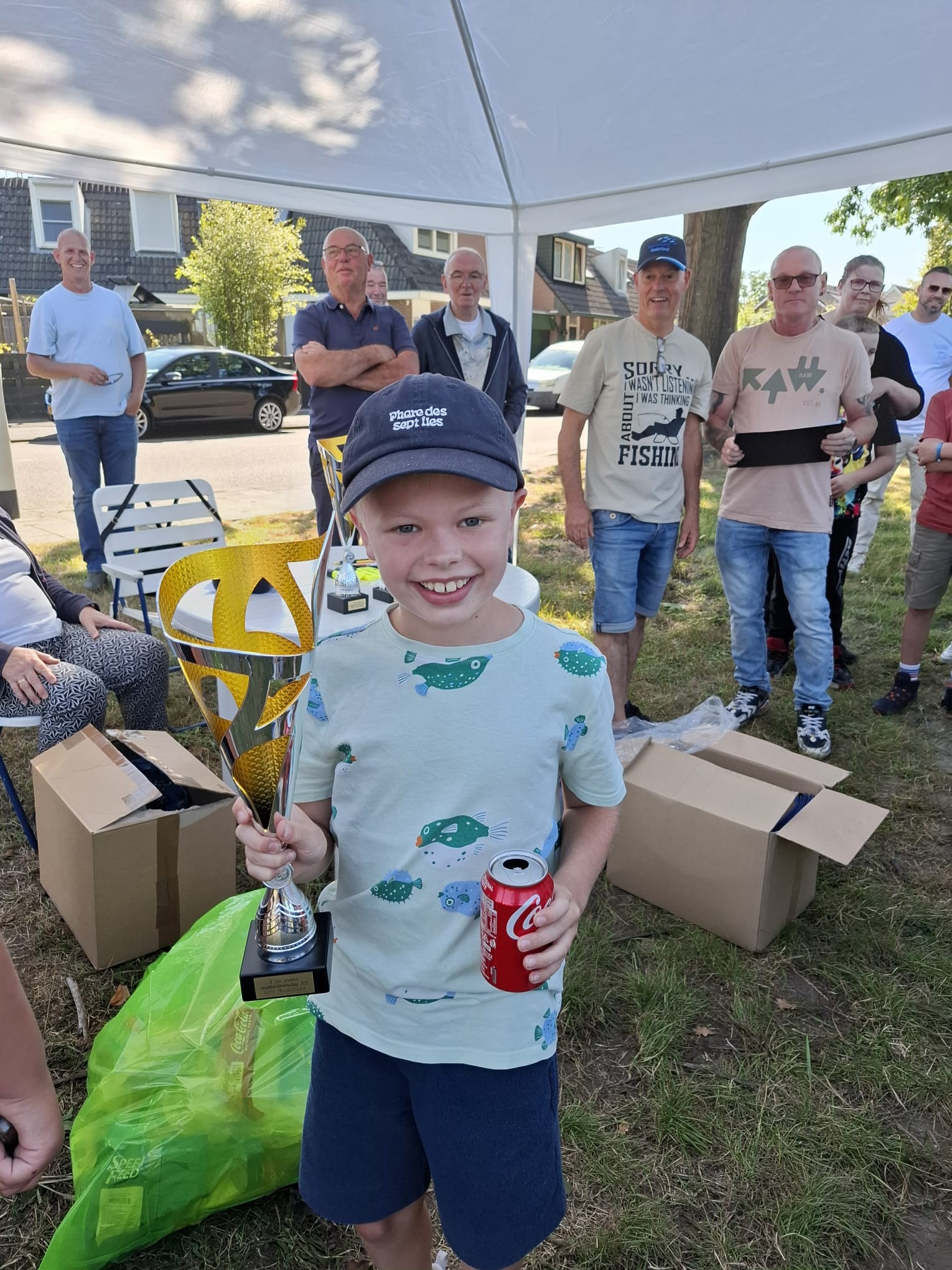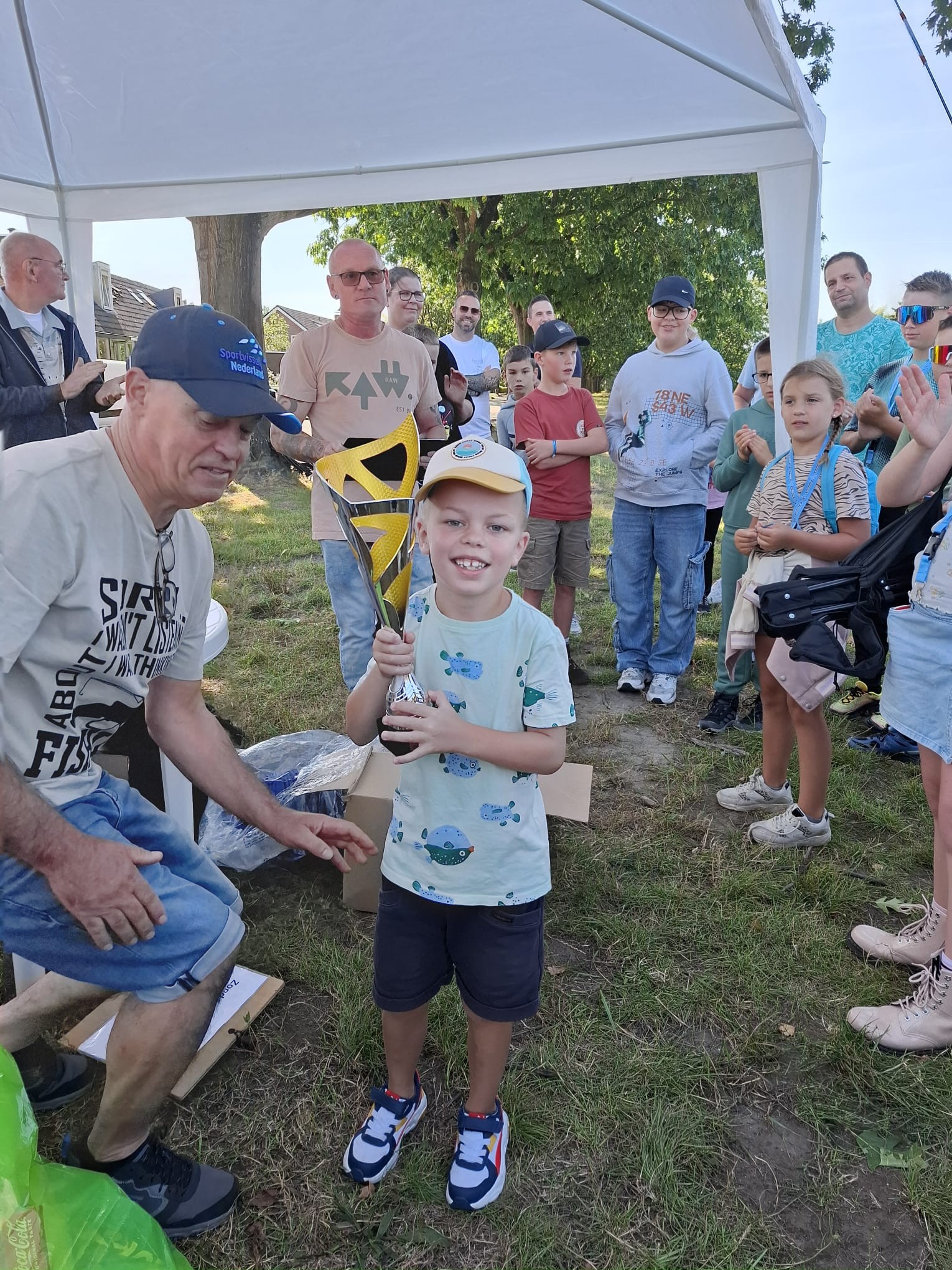 Toen alle vissertjes zich met hun ouders hadden verzameld bij de tent werd de uitslag bekend gemaakt.