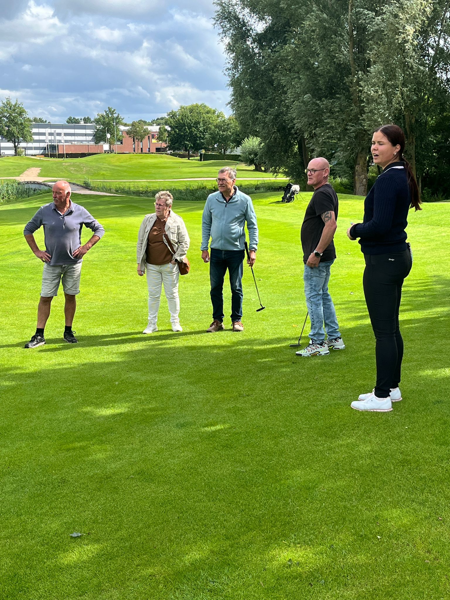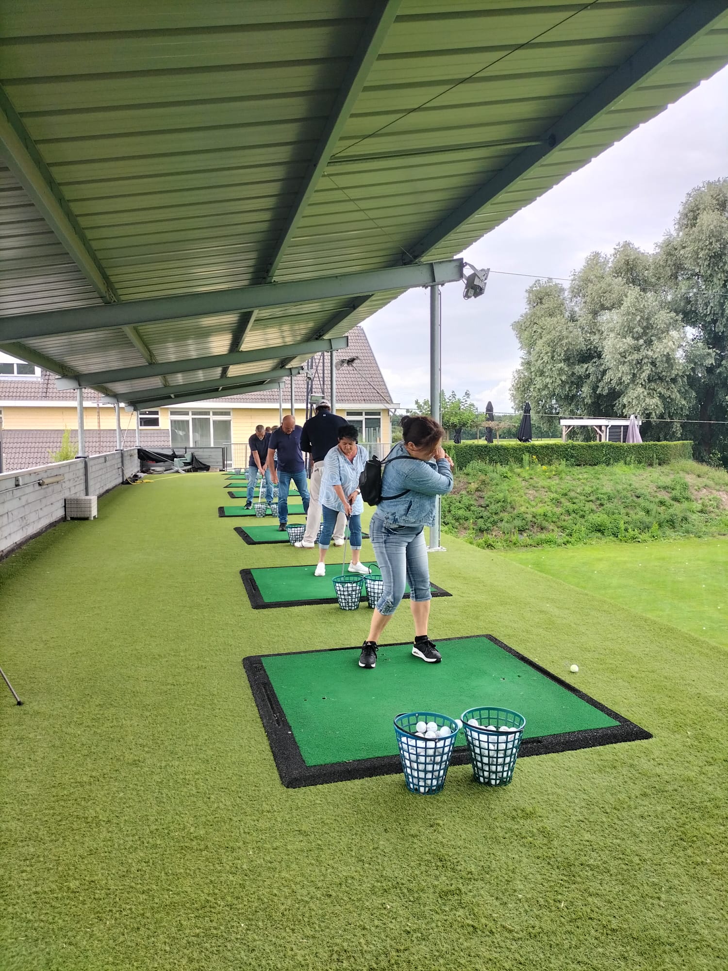Nadat het zonnetje doorbrak, zijn wij in 2 groepen de golfbaan opgegaan.